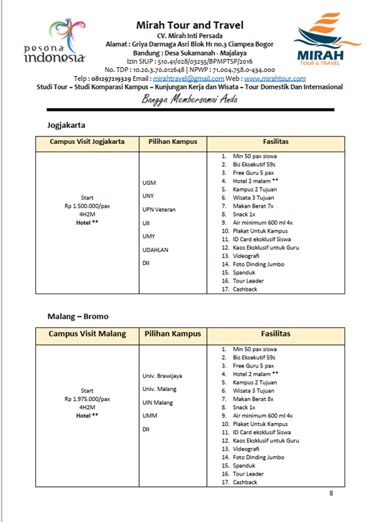 2. Keunggulan Paket Campus Visit Bersama Mirah Tour